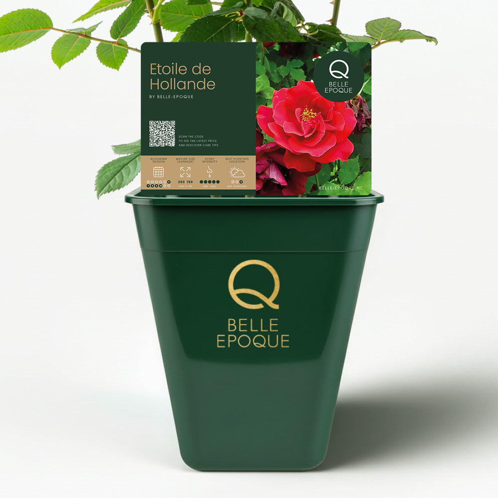 Bij Belle Epoque begrijpen we het belang van kwaliteit. Daarom komt onze 'Étoile de Hollande' direct van de kwekerij, wat betekent dat elke plant met zorg en expertise is gekweekt om te zorgen voor de beste kwaliteit en gezondheid. Voor slechts €14,40 kunt u deze prachtige klimroos aan uw collectie toevoegen en genieten van haar betoverende donkerrode bloemen en lange bloeiperiode.