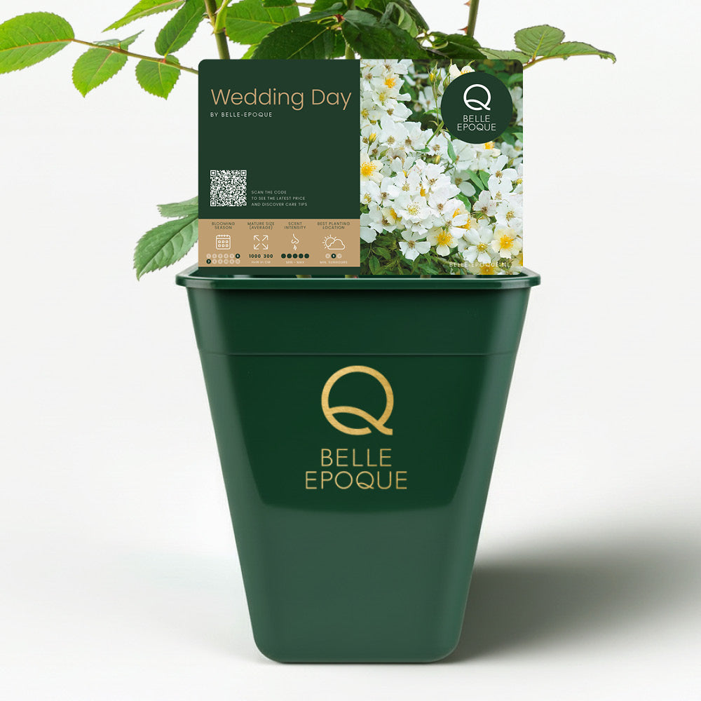 ‘Wedding Day’ is uitstekend winterhard en zeer vitaal. Plant haar in goed doorlatende, vruchtbare grond op een zonnige of halfbeschaduwde standplaats. Met een jaarlijkse gift van rozenvoeding en een lichte snoei na de bloei blijft ze gezond en rijkbloeiend.