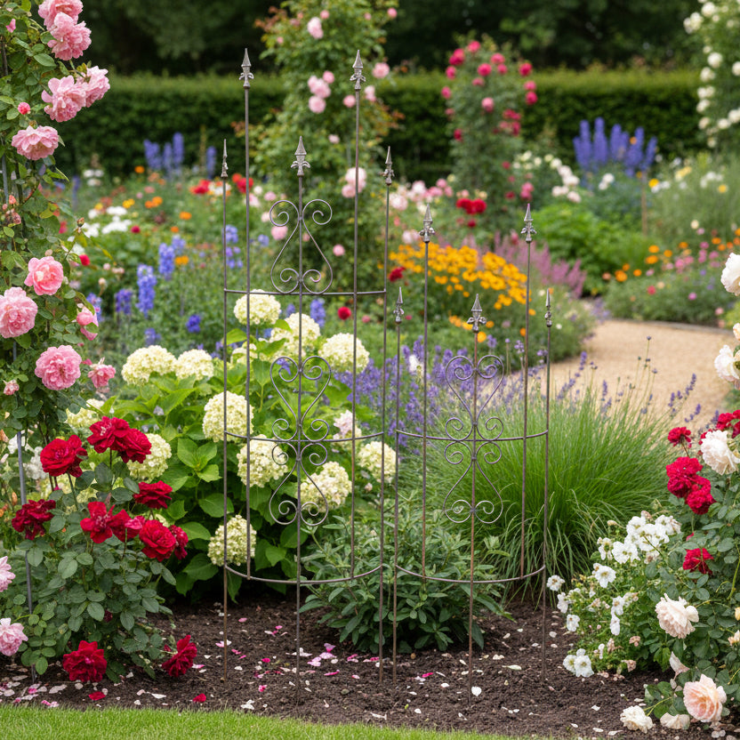 Onze rozenbogen en obelisken zijn ideaal voor klimrozen en ramblerrozen. Ze geven structuur aan de tuin en zorgen ervoor dat rozen gezond kunnen groeien en optimaal tot bloei komen. Plantensteunen en tuinstandaards bieden extra ondersteuning aan jonge of zware planten en helpen bij een nette, verzorgde tuinindeling.