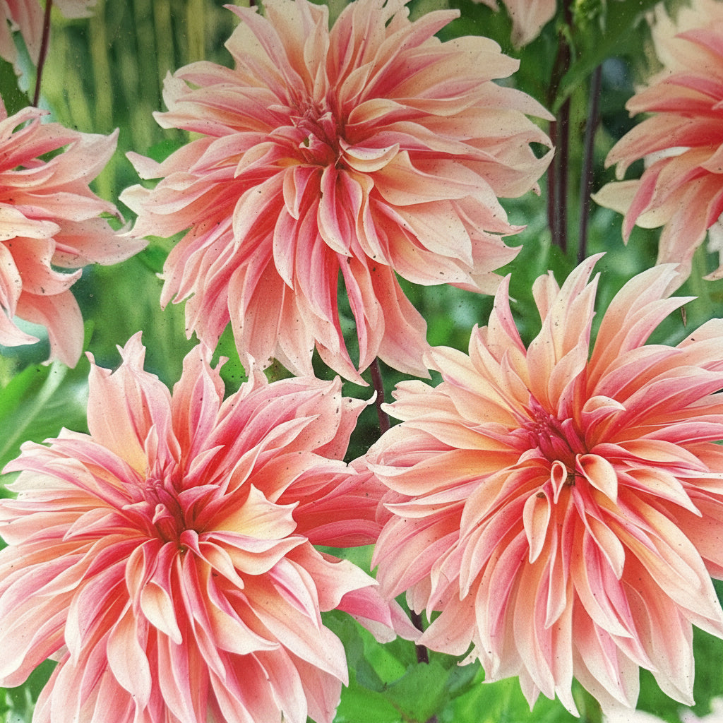 Dahlia Labyrinth ist eine einzigartige, reichblühende Dahlie mit einem verspielten Farbenspiel und fast künstlerischem Aussehen. Die sanften Töne und vollen Blüten machen diese Sorte zu einem echten Blickfang im Garten, besonders in Kombination mit Rosen.