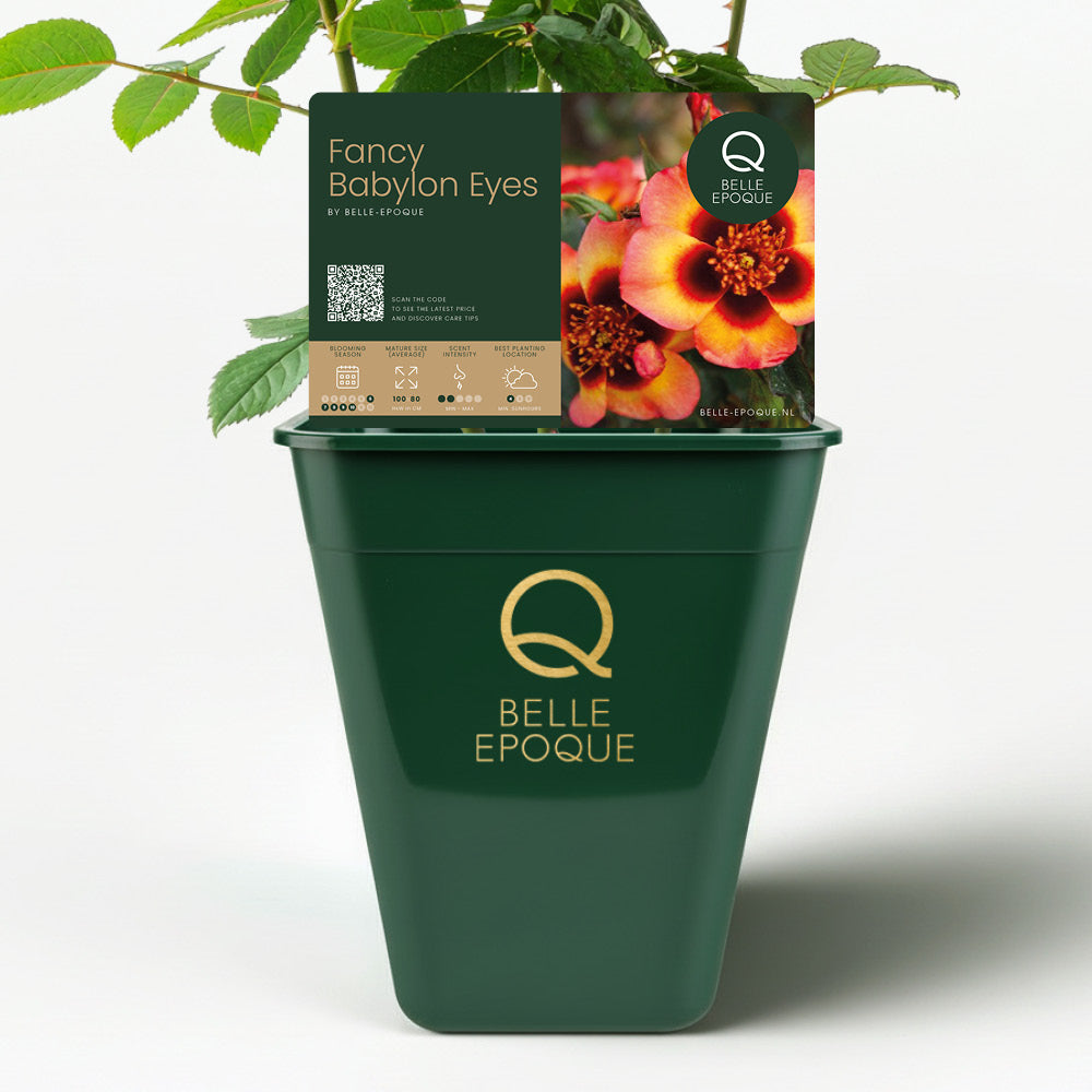 Fancy Babylon Eyes feels at home in vibrant borders, but also makes a beautiful standalone eye-catcher in the garden. With its vigorous growth and striking color palette, it's an excellent choice for gardeners who appreciate unique roses with a modern look.