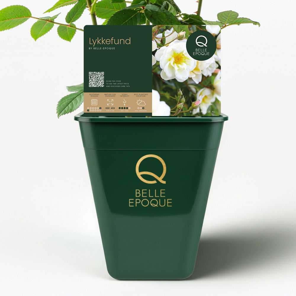 Lykkefund is robust, winter-hardy, and low-maintenance. Its origin lies in Denmark, where it was introduced in 1930 by the rose expert Aksel Olsen.The variety originated from a cross between the wild rose Rosa helenae and the historic bourbon rose Zéphirine Drouhin, which explains its elegant yet strong character.