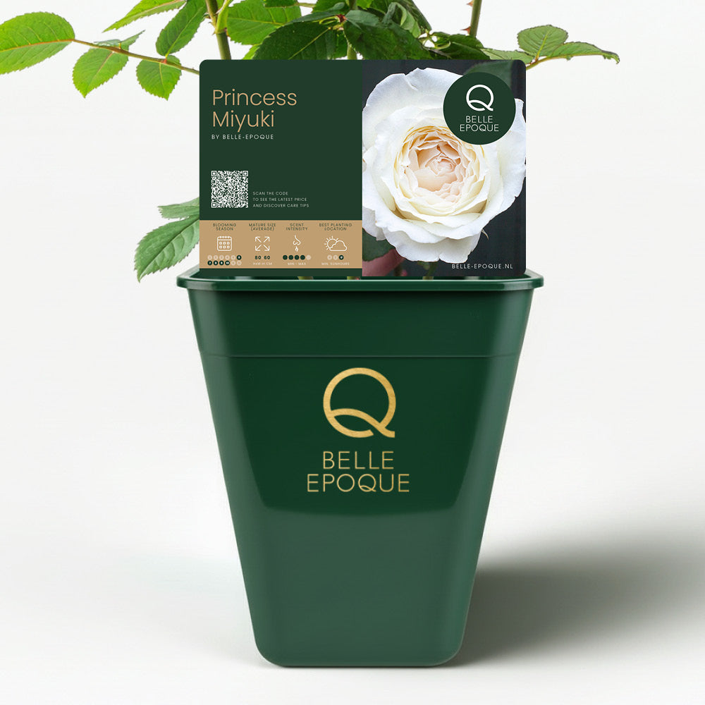 The Princess Miyuki® (First Snow) is a unique Japanese rose that lives up to its name with its pure white flowers and enchanting scent. Loved worldwide as a cut rose and awarded the prestigious SAF Red Ribbon Award, this variety is now available exclusively in the Netherlands for the first time via Belle Epoque – straight from our nursery as a garden variety.