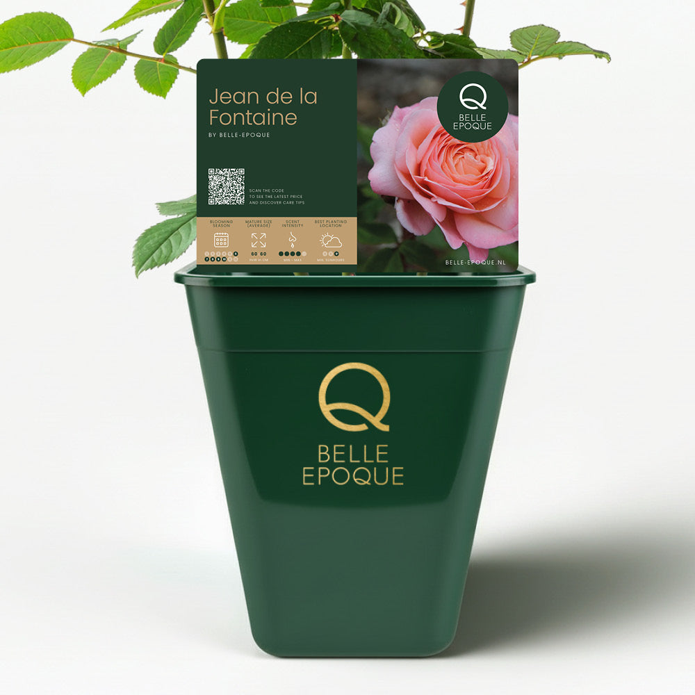 The Jean de La Fontaine® is a refined, intensely fragrant shrub rose from the Meilland collection, specially for everyone who loves romance and classic garden charm. The large, fully double flowers open in soft pink shades with a hint of salmon in the center. An atmospheric rose that immediately stands out due to its poetic appearance and powerful perfume.