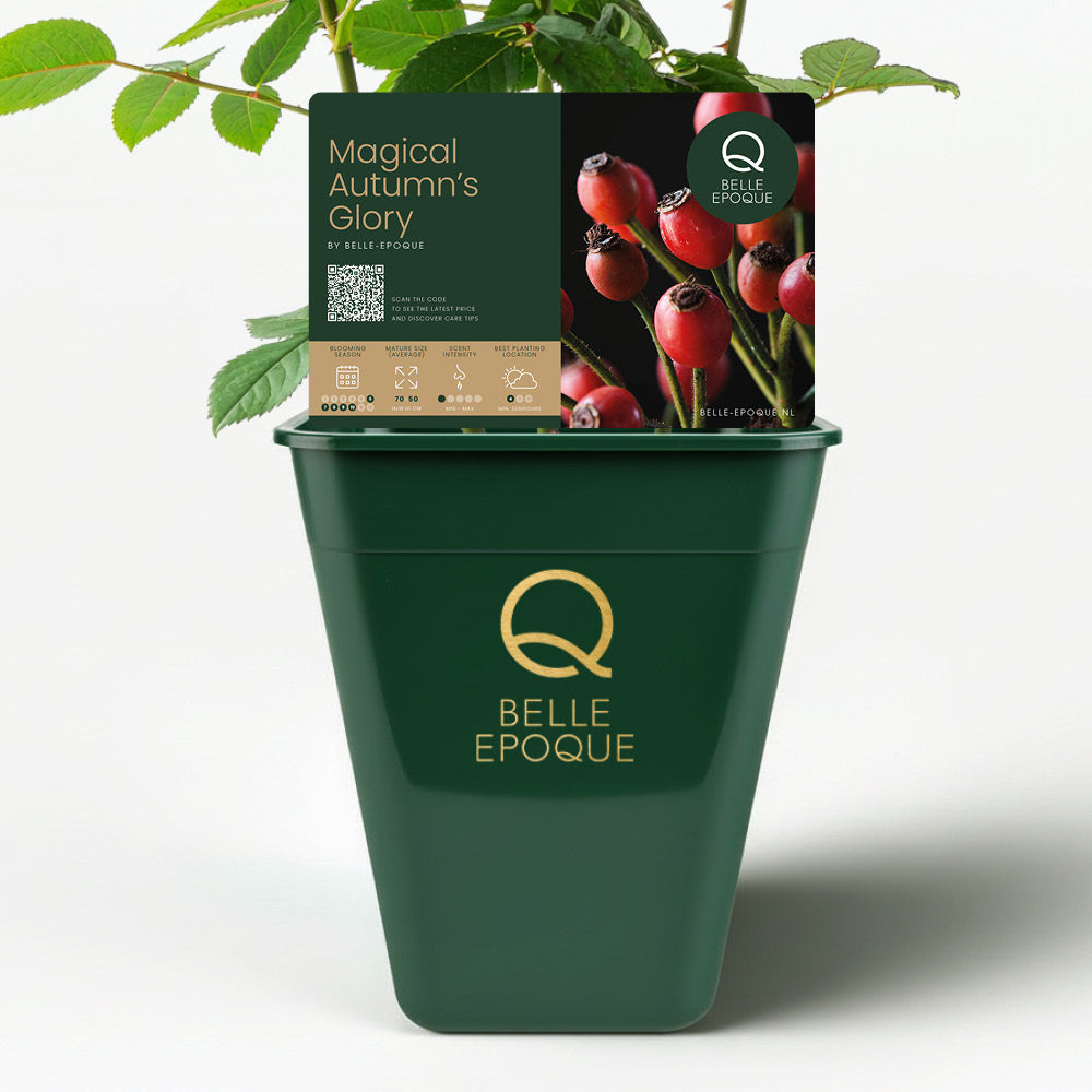 The hips of ‘Magical Autumn’s Glory’ are firm, intensely colored, and often remain on the plant well into winter. This creates months of life and structure in the garden. Ideal for those who love a garden that continues to surprise throughout the seasons. The hips are also excellent for floral arrangements, winter decorations, and natural displays.