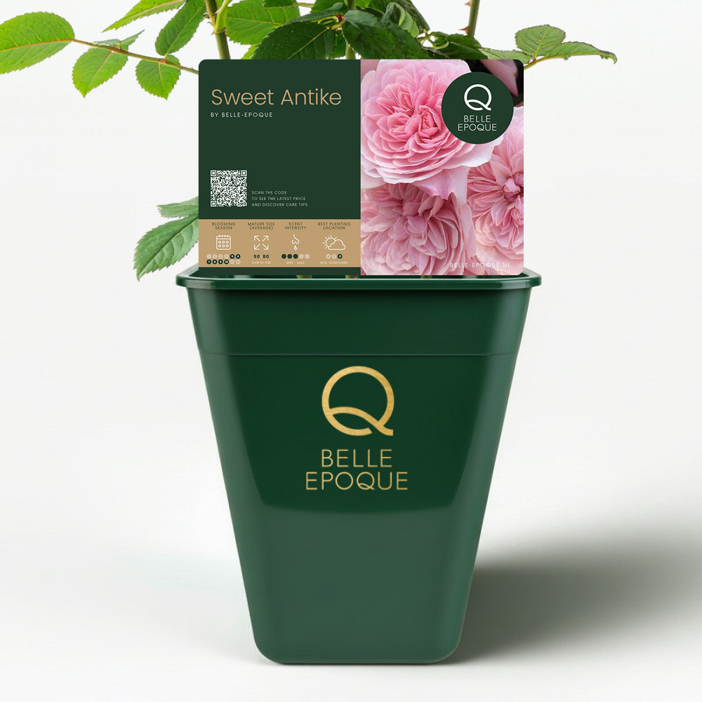 The flowers of the Sweet Antike have a soft, blush pink tint and radiate elegance. The flower shape is full and layered, with no less than 70 to 80 petals per flower. The inflorescence is profuse and repeats throughout the season, providing a constant supply of color and fragrance in your garden. With an average diameter 8 centimeter The flowers are impressive in size. The rose has a strong, delightful fragrance that stimulates the senses.