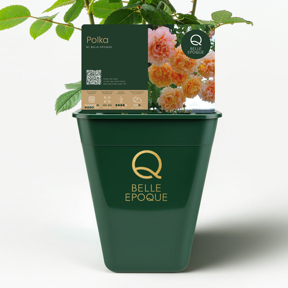 The 'Polka' Can be trained as either a compact shrub (up to 1.5 meters) or a vigorous climber (up to 4 meters). It is winter-hardy, disease-resistant, and low-maintenance. This makes it an excellent choice for walls, pergolas, and rose arches, or as a stylish focal point in larger gardens.