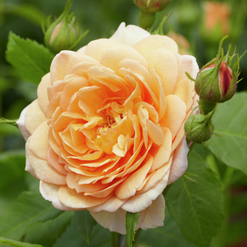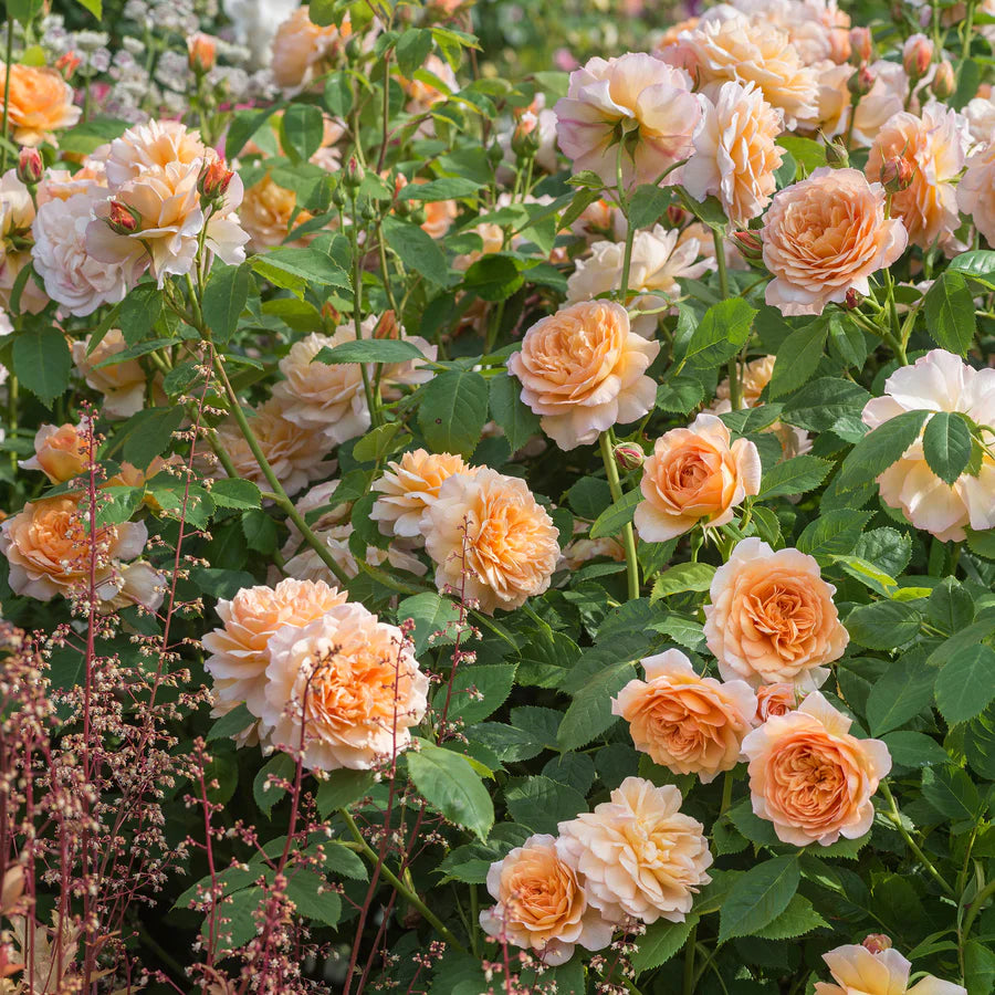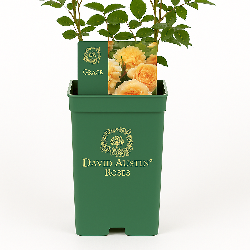 La rose Grace est appréciée pour sa couleur abricot chaleureuse et sa forme de fleur raffinée. Les grandes rosettes ont des pétales courbés vers l'arrière, donnant aux fleurs une apparence naturelle et douce. Le parfum chaud de thé ajoute une dimension supplémentaire et fait de cette rose une sensation dans le jardin.