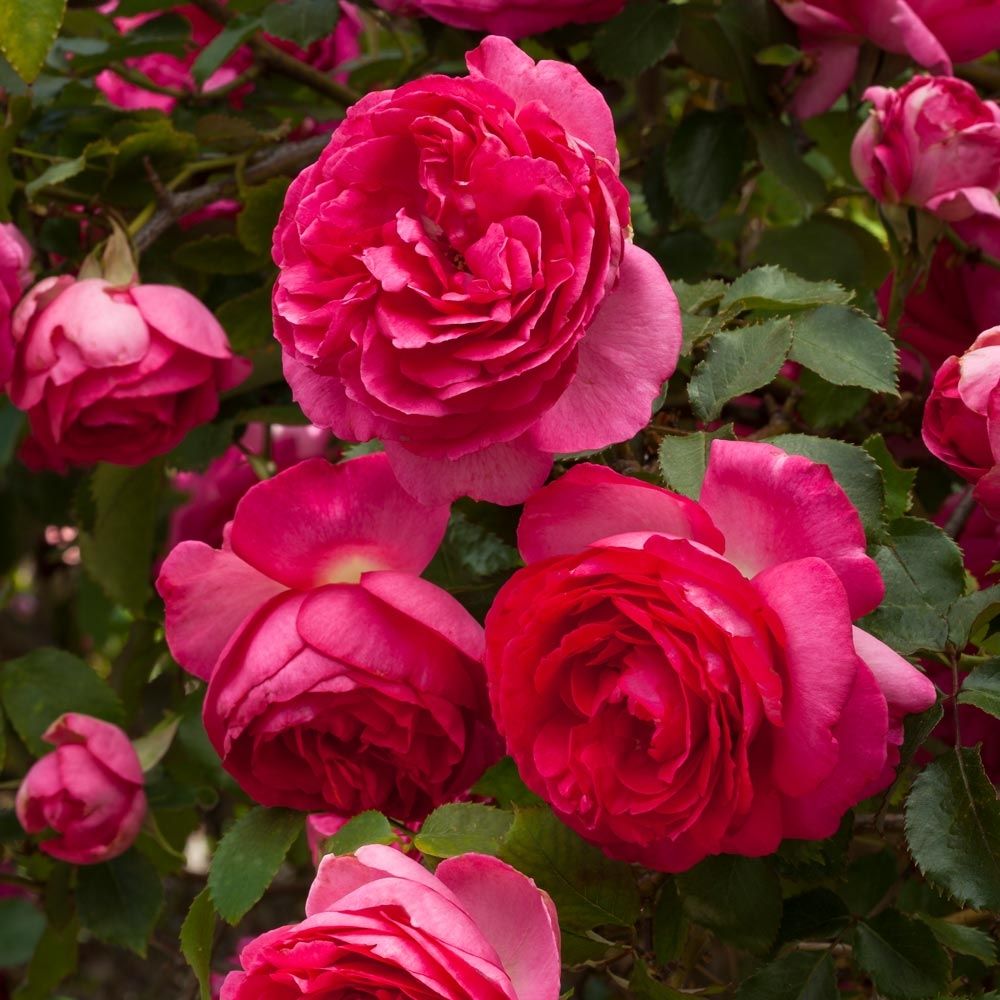 • Type: sterke, middelgrote tot forse klimroos.